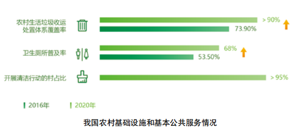 习近平总书记指出,现阶段,城乡差距大最直观的表现是基础设施和公共服务差距大。全面建成小康社会,必须在补短板上用全劲、使全力。“十三五”期间,各地各部门深入贯彻习近平新时代中国特色社会主义思想,全面落实党中央、国务院决策部署,瞄准全面建成小康社会目标,扎实推进农村人居环境整治,切实加强农村基础设施建设,加快农村公共服务发展,补短板、强弱项、提质量,美丽宜居乡村建设取得明显成效。
