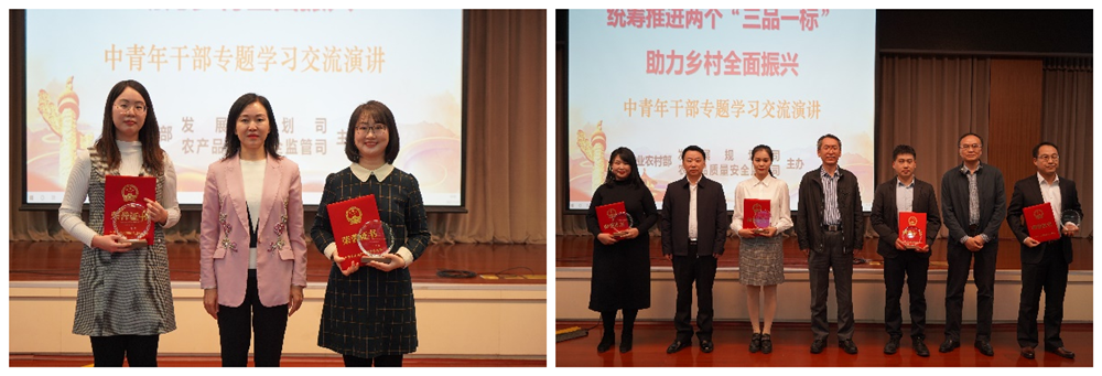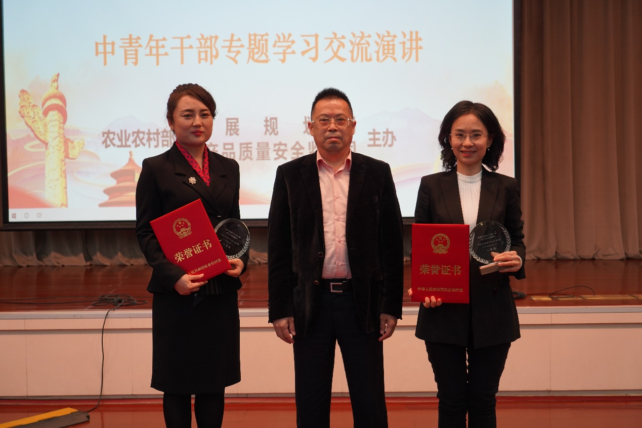 曾衍德总农艺师出席演讲活动,为一等奖选手颁奖并发表讲话。他充分肯定这次活动的良好效果、演讲同志的出色表现,展现了部系统青年干部的锐气和睿智。他指出,适应人民群众生活水平的提高,必须统筹推进两个“三品一标”,这是发展的需要,也是任务的使然。他强调,要聚焦重点、聚集资源、聚合力量,扎实推进两个“三品一标”。一要提高政治高度增强自觉,把习近平总书记重要指示和要求落实到工作中,体现到行动中,不折不扣抓好落实。二要拓展专业深度精准推进,深入研究、准确把握,厘清“三品一标”基本要求、实现路径、工作机制,分行业、分品种、分区域,逐项逐区推进。三要练就担当厚度落细落小,提高工作的主动性、落实的执行力,高质量完成“三品一标”各项工作任务。